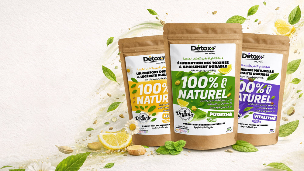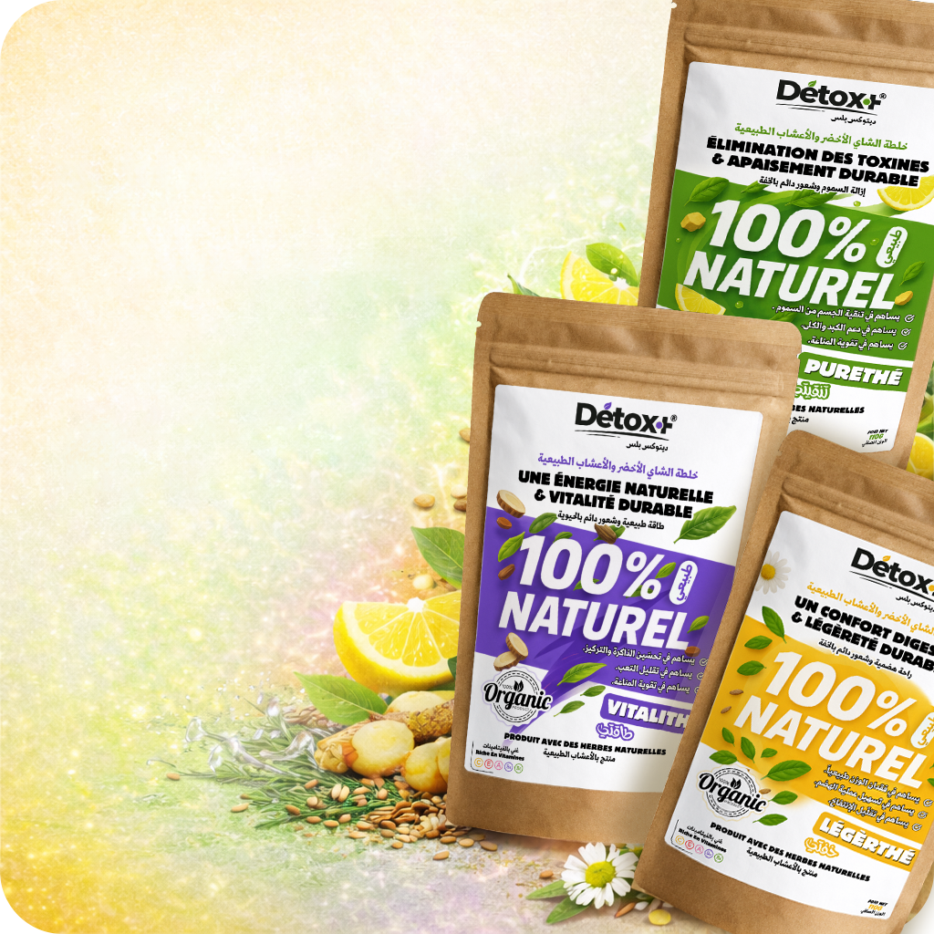 Detox+ هي مجموعة شاي عشبي طبيعي، مصمّمة لدعم الجسم في التنقية، الهضم، الطاقة، والراحة اليومية بطريقة لطيفة ومتوازنة.