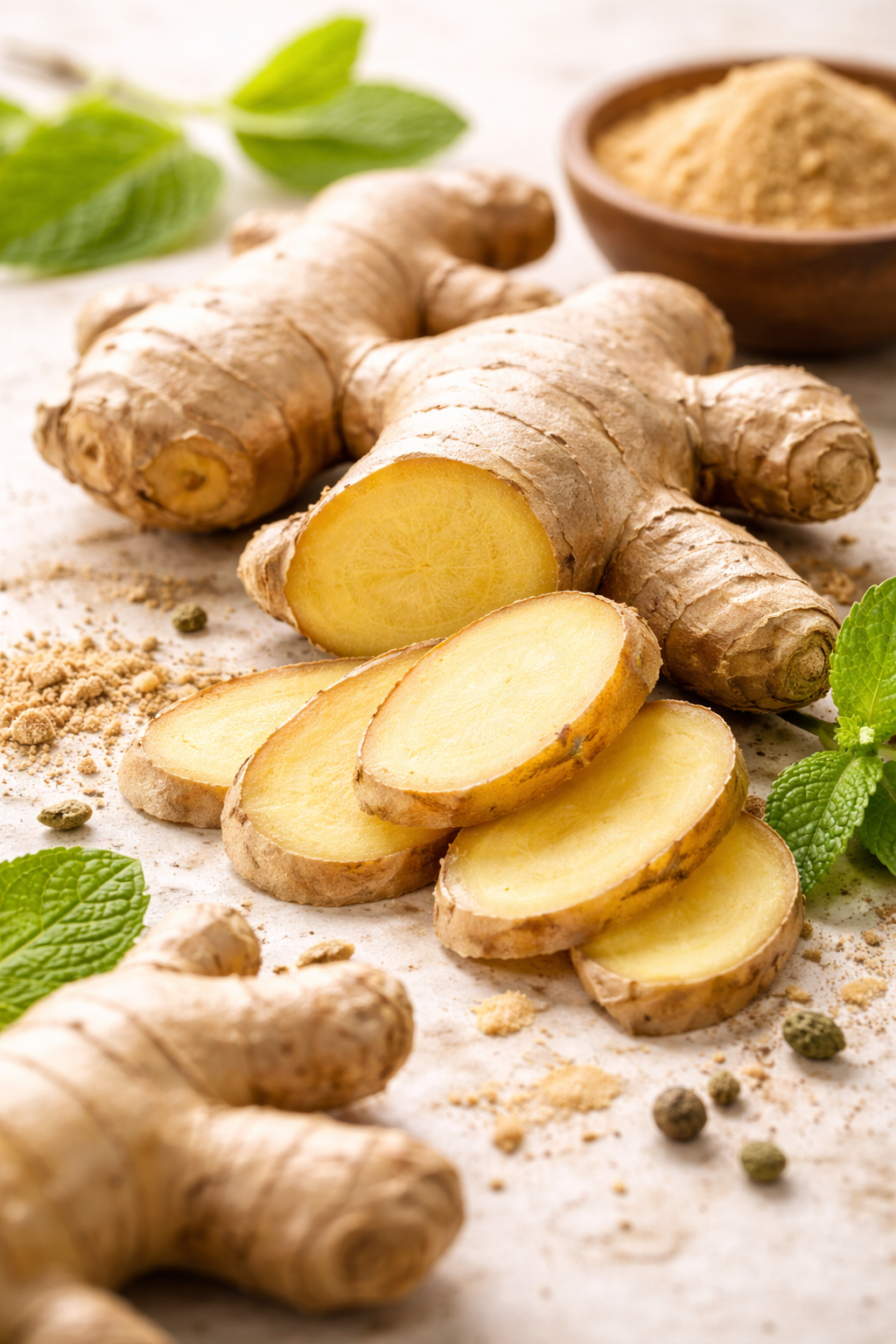 الزنجبيل معروف بتأثيره الدافئ، ويُستعمل تقليديًا لدعم الهضم بعد الوجبات، خصوصًا عند الإحساس بالثِقل أو الامتلاء، كما يساعد الجسم على الشعور بالراحة.